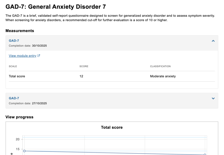 - PHQ-9, GAD-7 & WSAS questionnaires