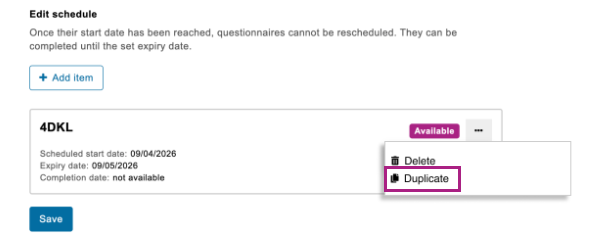 Duplicaatknop bij Bewerken vragenlijstplanning